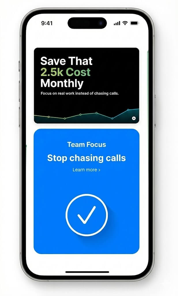 Reduces manual call handling and repetitive tasks so your team can focus on real work instead of chasing calls.
